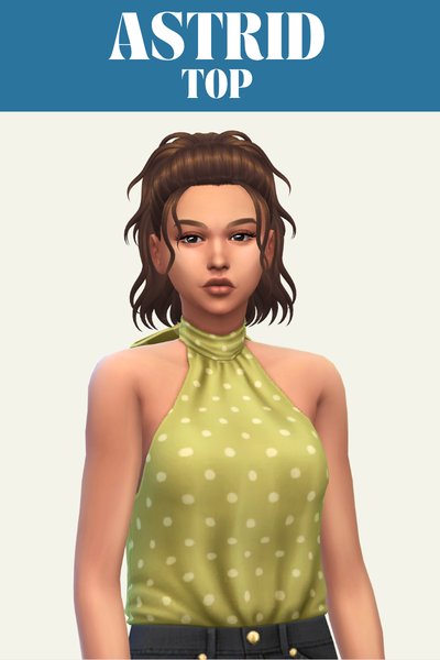 Astrid is a high-neck top is a silk fabric that feels so fabulous. It shows off all of the sim’s arms and makes them look really beautiful. You can dress this up with fancy pants or just wear jeans for a more casual look.