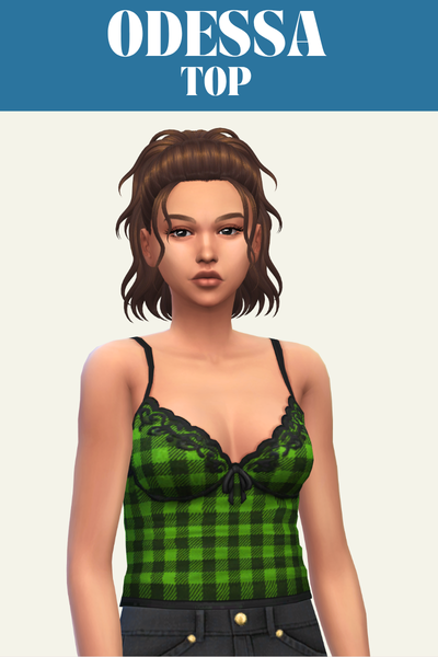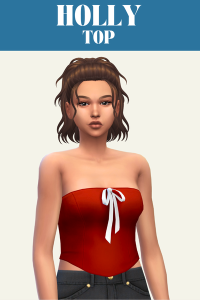 Holly is a strapless top with a bow on the chest, making your sim look like a present. This is such a good summer top and comes in both solid colours and patterns.
