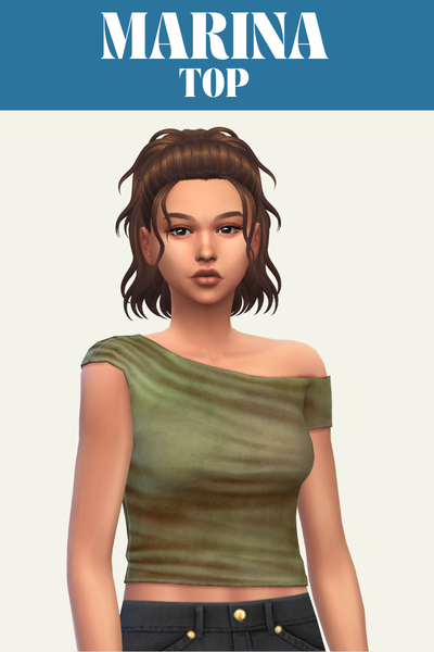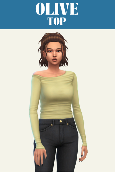 Olive is a great simple top for sims who don’t wear crazy patterns and still want to look beautiful. It has a long sleeve with a one shoulder vibe with some bunched fabric giving it some great realism.