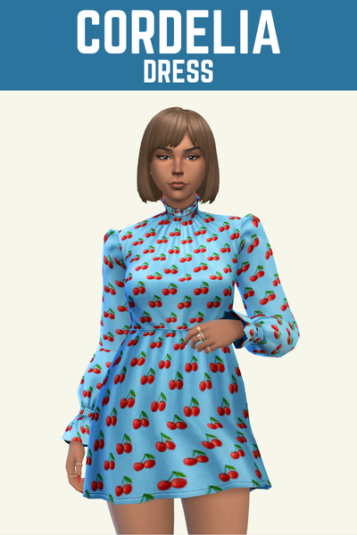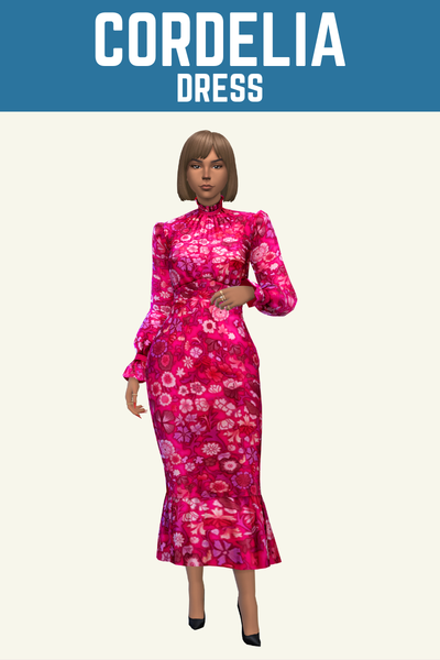 Cordelia is an iconic name in The Sims and this dress fits that so well. It has a high neckline and a fun ruffle sleeve with tons of cute swatches to choose from.