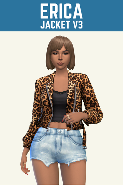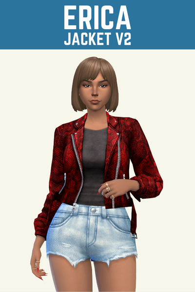 The Erica jacket comes in three versions with different things underneath. The first has nothing, just skin so your sim will look hot and show some skin.
