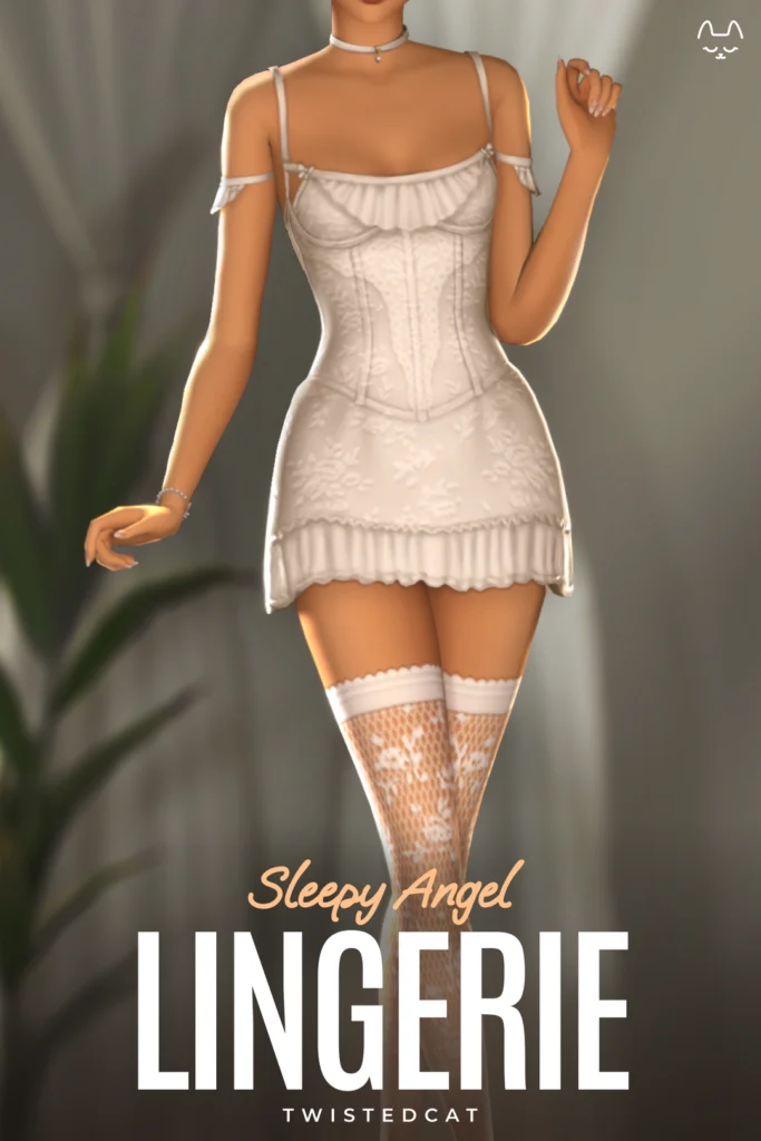 If you’ve ever wanted your sim to look so sexy, this is the set. This features a gorgeous lingerie set as well as some thigh high tights.