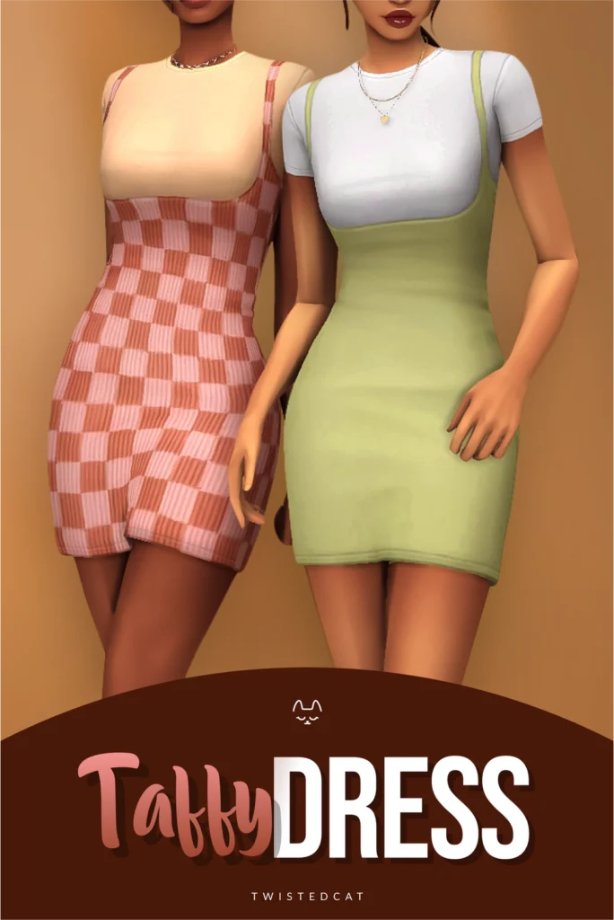 The Taffy dress is such a cute, casual look for your sims. It has a little t-shirt underneath a dress that comes in such fun colours and even cute little checker designs.