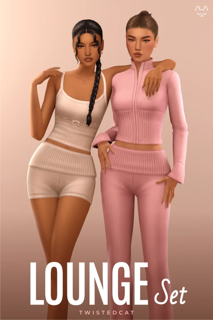 If you’ve ever wanted your sims to look so good when just hanging out at home, this is the set for you. It has four beautiful pieces with this gorgeous ribbed texture that I’m so in love with.