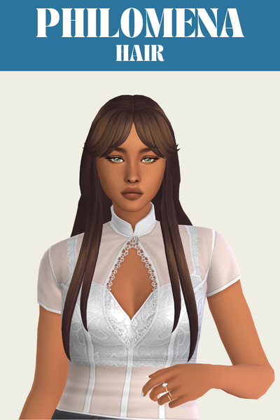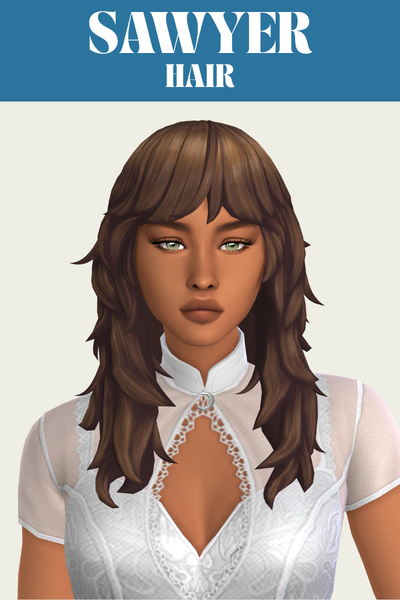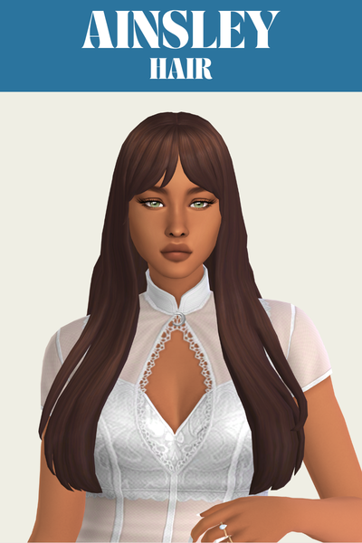 Ainsley is a middle-parted hair with a cute bang. My favourite part about this bang look is it feels like the sim had straight bangs and is trying to grow them out which is super adorable.