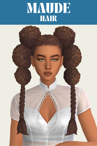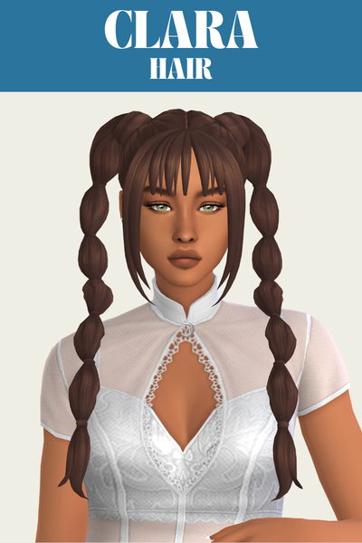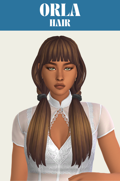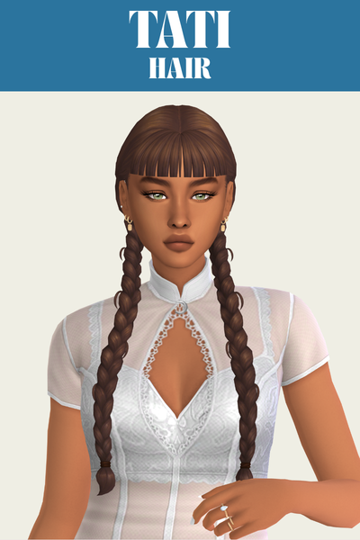 Tati is a fun pigtail braid look for your sims with a straight across bang. I really like that the braids are behind the sim’s ear so you can add a really cute earring to show off!