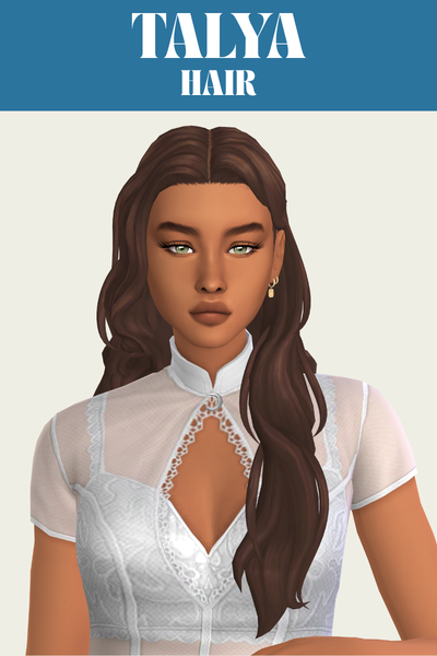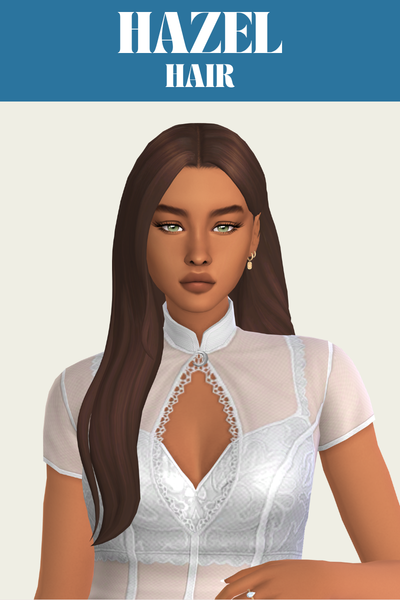 Hazel is a middle-parted hair with a mostly straight texture but a slight wave. I love that the hair has half of it behind the back because I love seeing my cool cc tops under the hairs.
