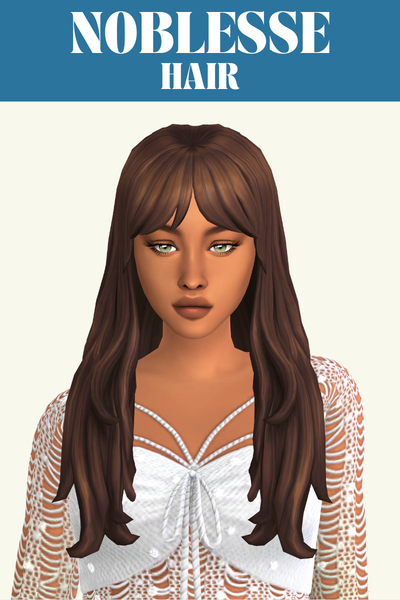 Noblesse is a really pretty hair with a slight wave to it and a nice little fringe. This type of bang makes it feel like the sim might be trying to grow their bangs out!