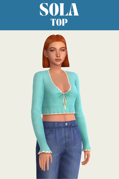 Sola is a long sleeve crop top that’s super adorable. It has a nice texture to it that makes me think IRL it would be soft. I love the little bow on the front too!