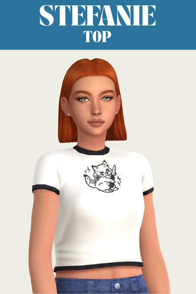 A good t-shirt is a must for my mods folder for when my sims are relaxing. This top is a great option! It has a different colour on the neckline in a lot of the swatches and the different graphics are super fun.