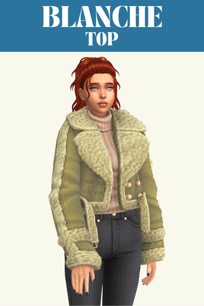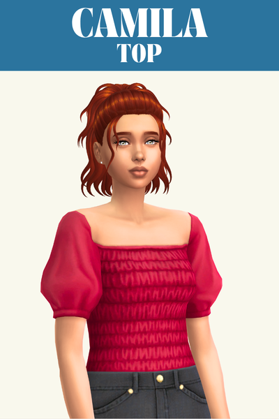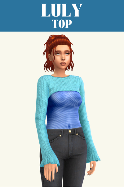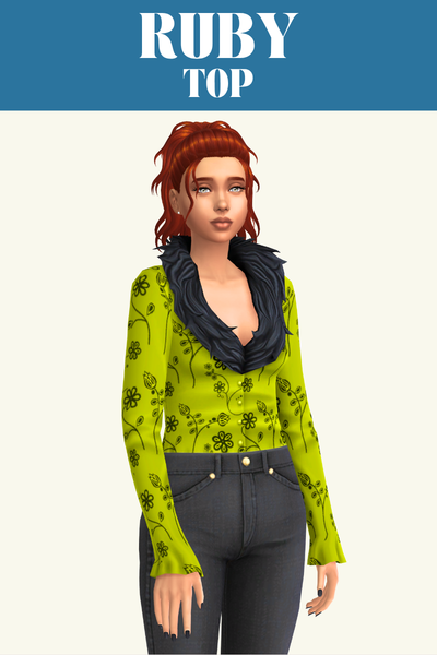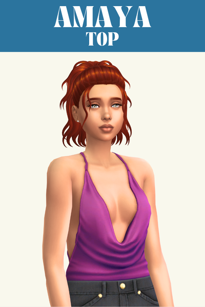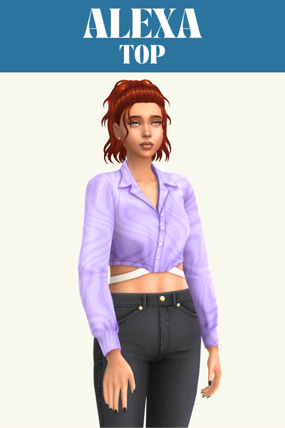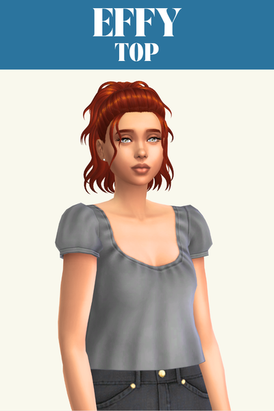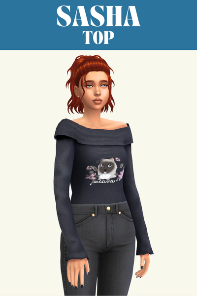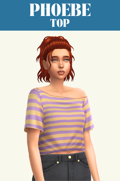 The Phoebe top is a great one if you’re looking for an everyday or lounge top for your sim. It has an off the shoulder look and folds in at the bottom so it looks good when worn with high-waisted pants so it looks like its tucked in.