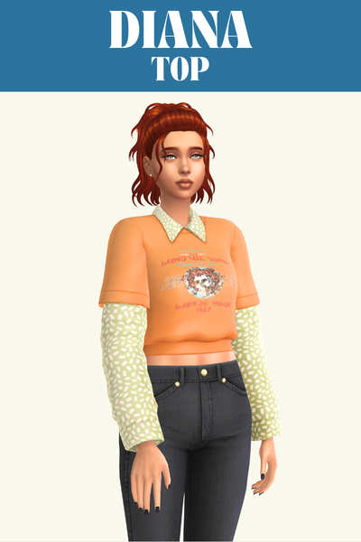 The Diana top is a super cute one with a layered look. It has a fun collared shirt underneath a cropped t-shirt shaped sweater. The sweater has a graphic design on the chest and the whole look is so fun.