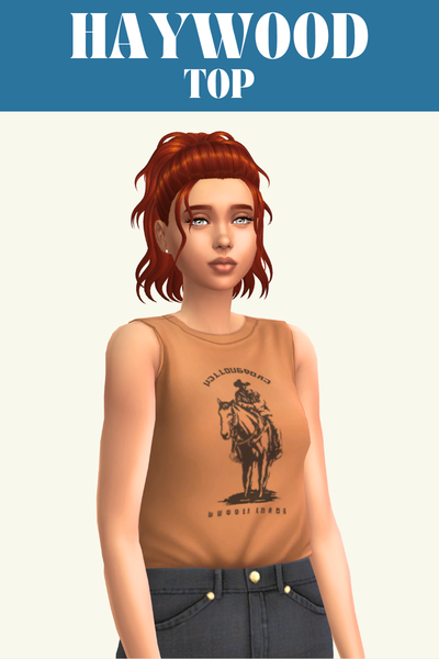 Haywood is a sleeveless top with a high neckline. It comes in some fun graphic designs and I really love the striped swatches. This is what your sims should wear in warm weather when they’re just hanging out.
