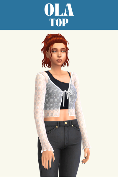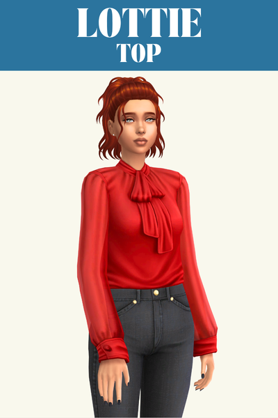 Lottie is the kind of top Nancy Landgraab needs to be wearing with a pair of power pants and a heel, not her boring outfit from the base game. This top has long sleeves and a huge bow tied in the same fabric.