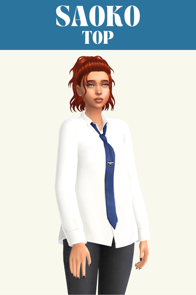 This is a Prada inspired top which is so fun because I’d never buy a luxury shirt, I’d be scared of ruining it. It has a nice button down shirt with a tie featuring a simlish version of the Prada logo.